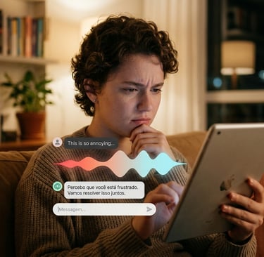 Modelos modernos analisam a velocidade da digitação, a escolha de palavras e até a modulação de voz para identificar estados emocionais. Se você digitar de forma ríspida, a IA pode ajustar o tom para ser mais conciliadora ou direta, dependendo da necessidade.