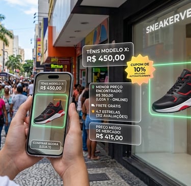 Comprar online em 2026 é uma experiência de concierge. A IA agora trabalha para o seu bolso, caçando o melhor preço de forma invisível.